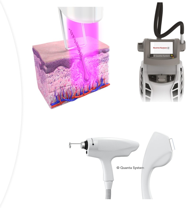Duetto MT equipped with the second generation of consolidated proprietary Quanta Mixed Technology® which can perform the largest range of hair removal applications, as well as vascular and rejuvenation treatments.